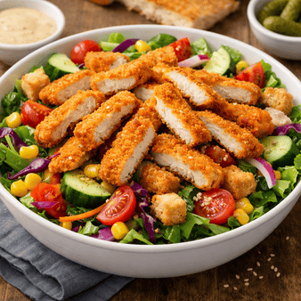 חתיכות שניצל ביתי , מוגש עם סלט וציפס / בוטיטו לבחירה
