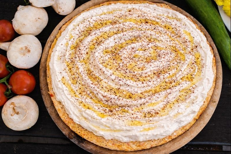 פיצה בגודל בינוני עם שומשום בשוליים עם מבחר תוספות מיוחדות