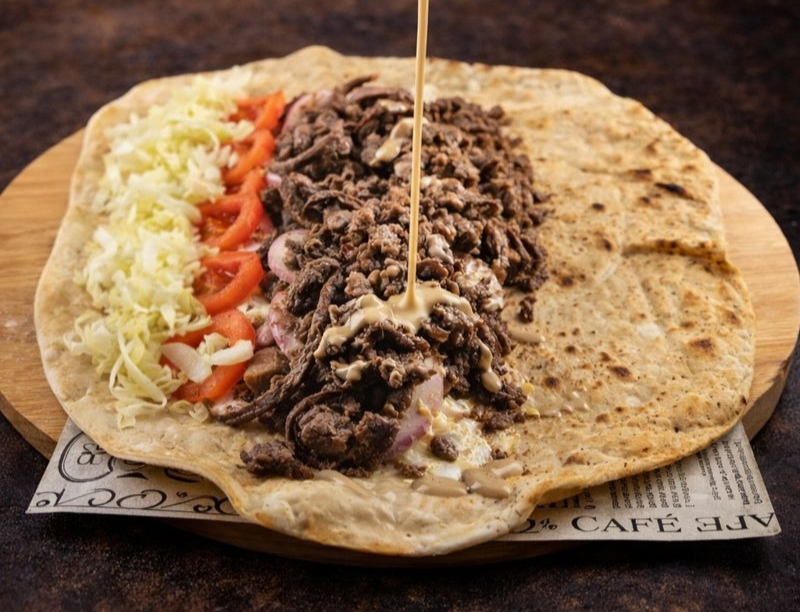 לפה שאופים במקום עם סלטים לבחירה במילוי שוארמה עגל